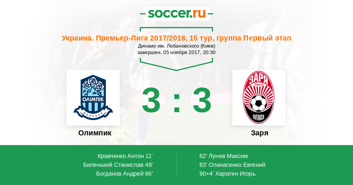 Олимпик - Заря: обзор матча 5 ноября 2017