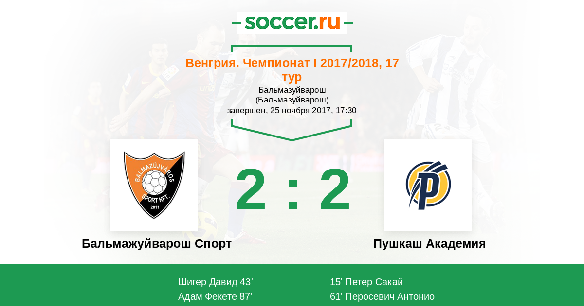 Бальмажуйварош Спорт - Пушкаш Академия: обзор матча 25 ноября 2017