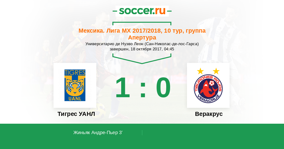 Тигрес УАНЛ - Веракрус: обзор матча 18 октября 2017