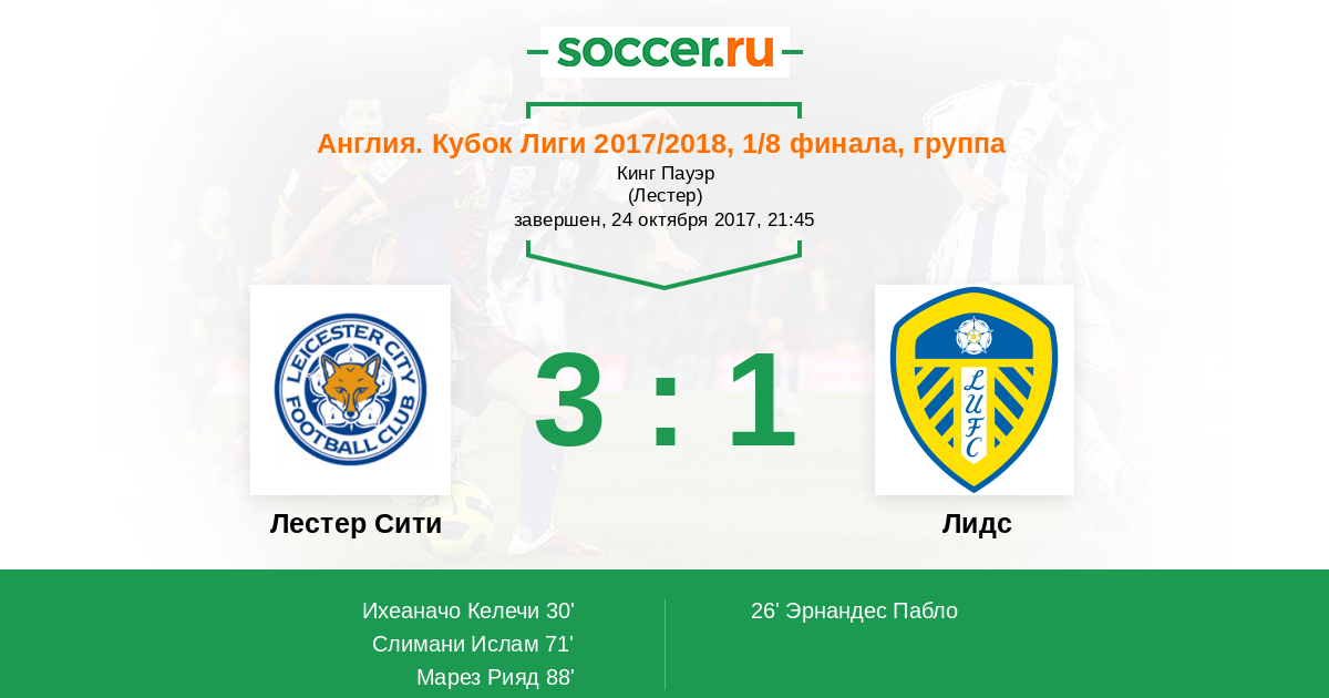 Лестер Сити - Лидс: обзор матча 24 октября 2017