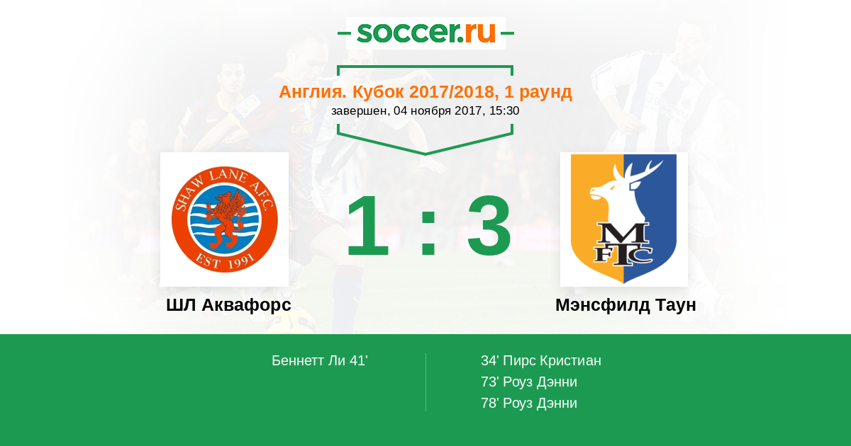 ШЛ Аквафорс - Мэнсфилд Таун: обзор матча 4 ноября 2017