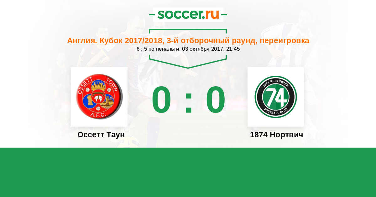 Оссетт Таун - 1874 Нортвич: обзор матча 3 октября 2017