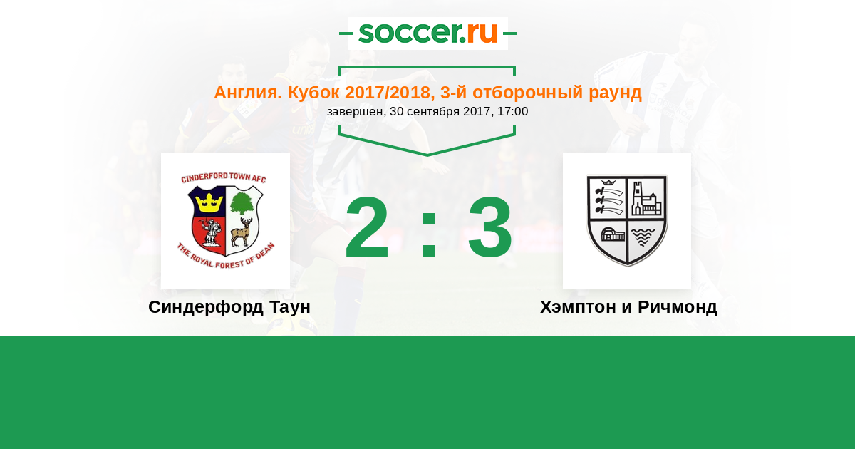 Синдерфорд Таун - Хэмптон и Ричмонд: обзор матча 30 сентября 2017