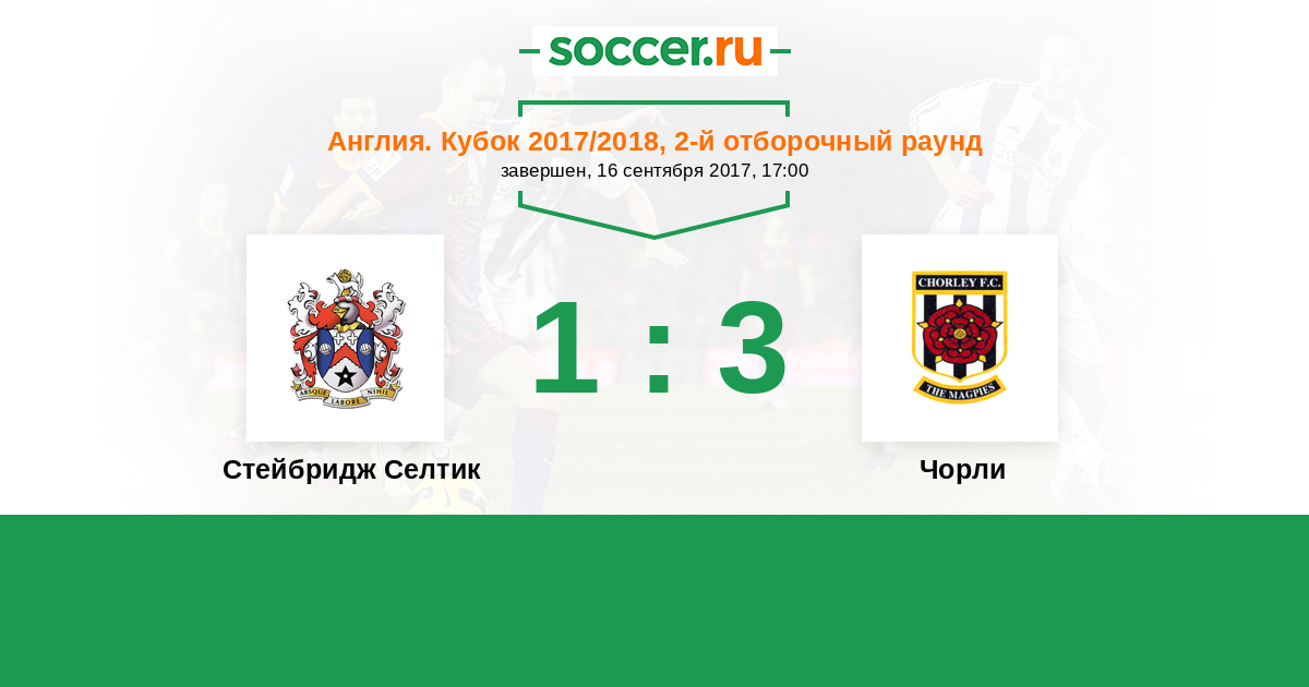 Стейбридж Селтик - Чорли: обзор матча 16 сентября 2017