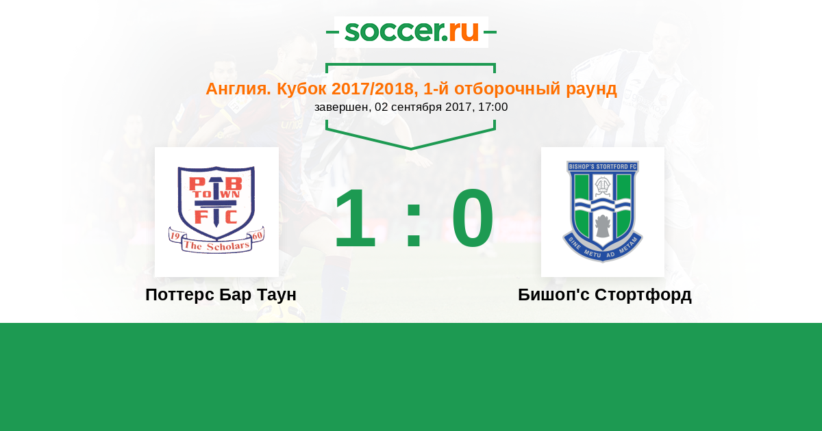 Поттерс Бар Таун - Бишоп'c Стортфорд: обзор матча 2 сентября 2017