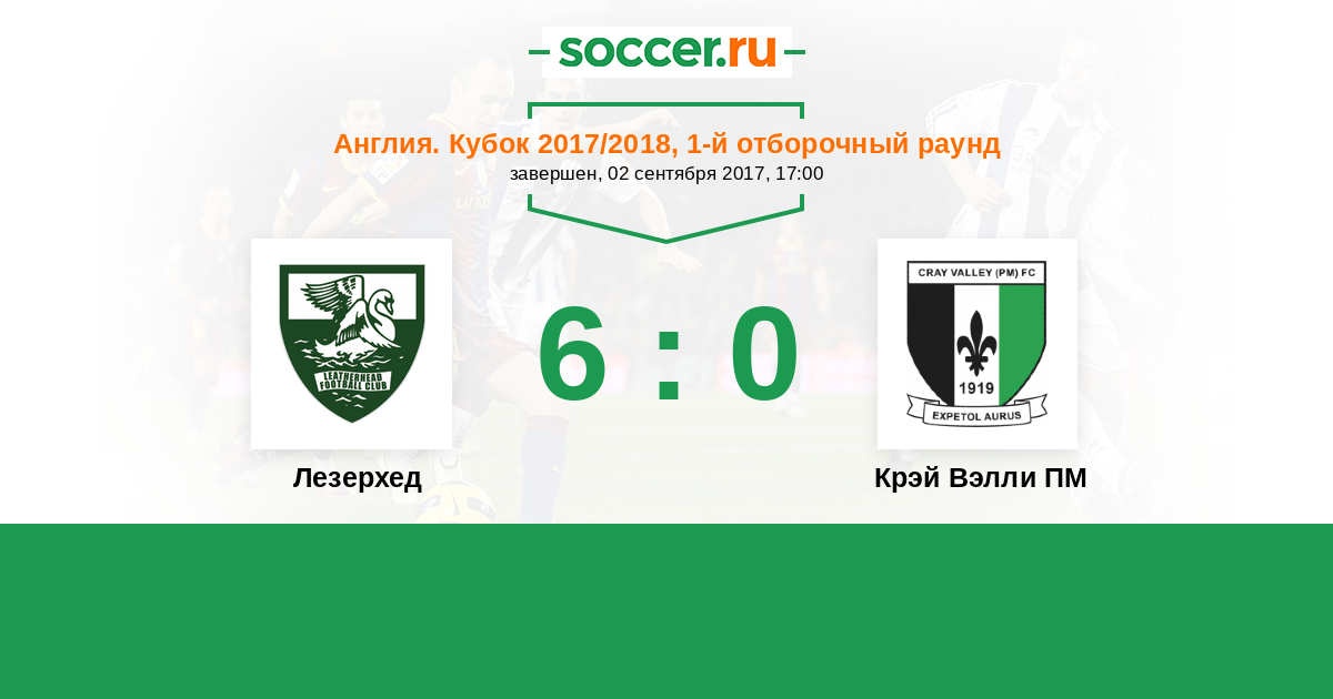 Лезерхед - Крэй Вэлли ПМ: обзор матча 2 сентября 2017