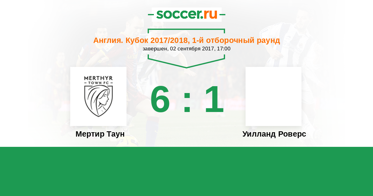 Мертир Таун - Уилланд Роверс: обзор матча 2 сентября 2017