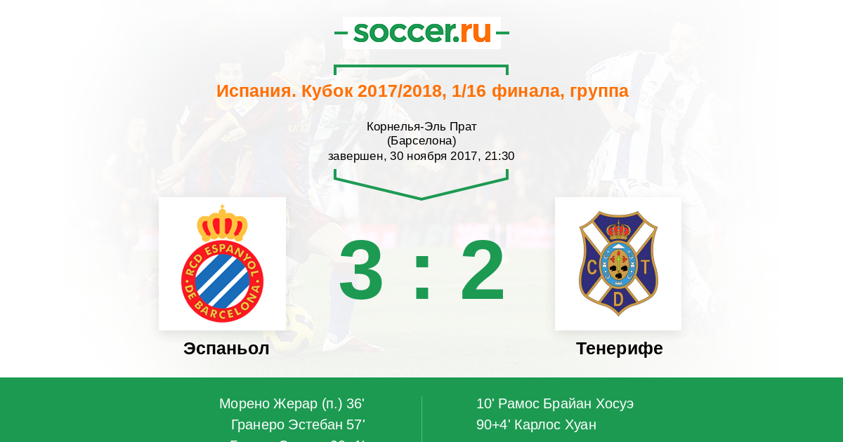 Эспаньол - Тенерифе: обзор матча 30 ноября 2017