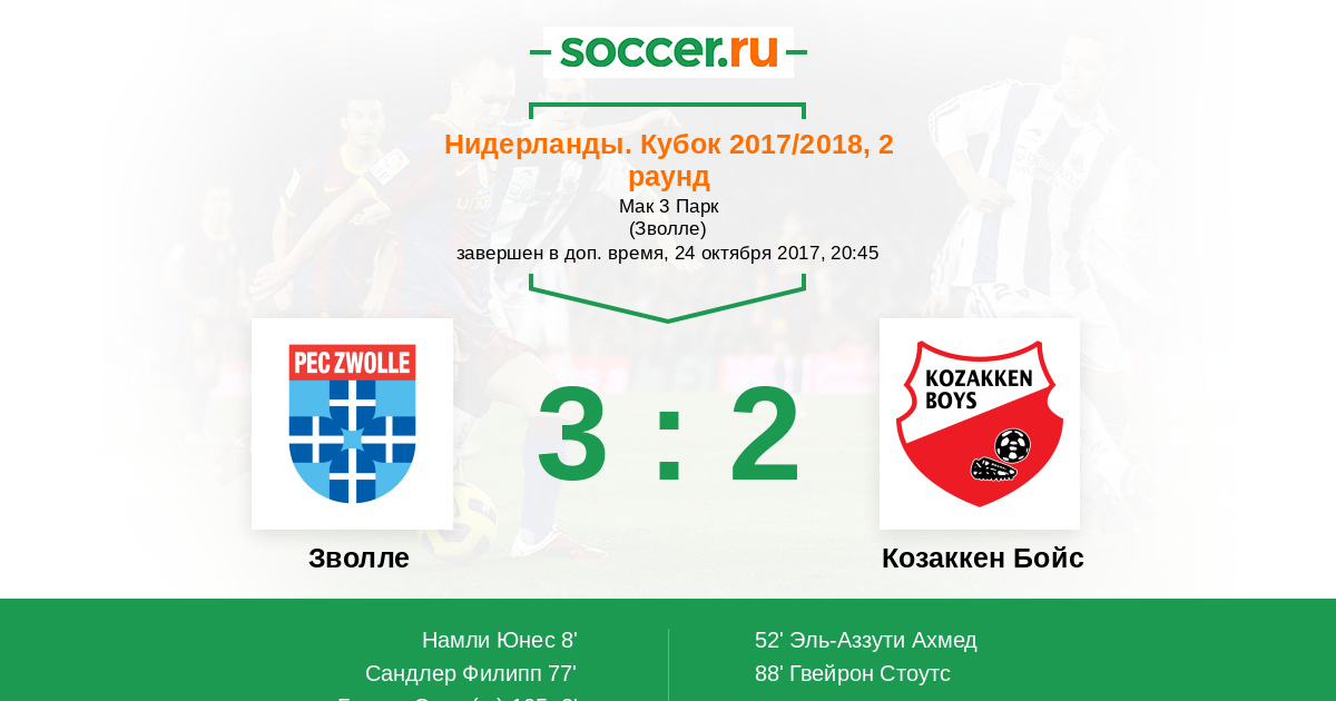 Зволле - Козаккен Бойс: обзор матча 24 октября 2017