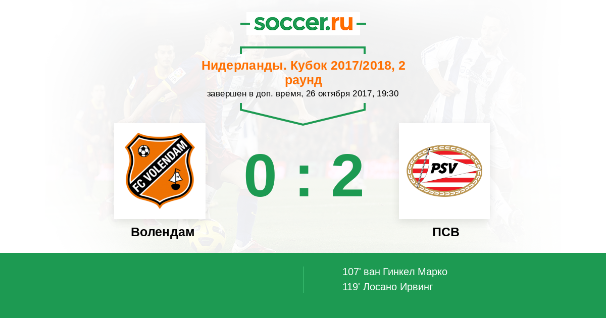 Волендам - ПСВ: обзор матча 26 октября 2017