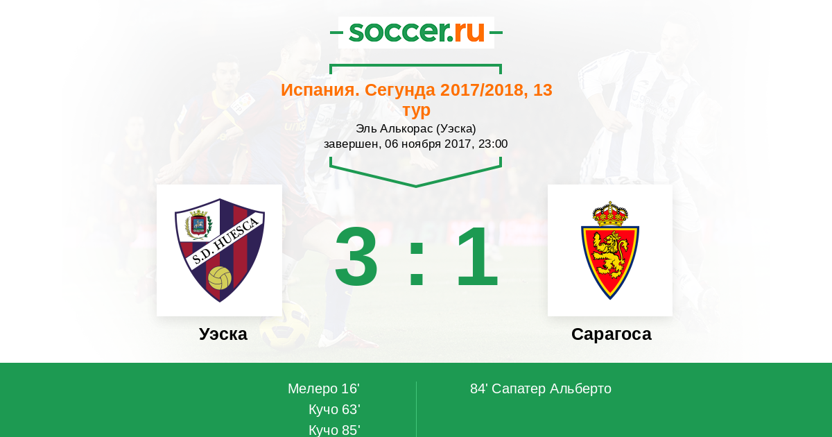 Уэска - Сарагоса: обзор матча 6 ноября 2017