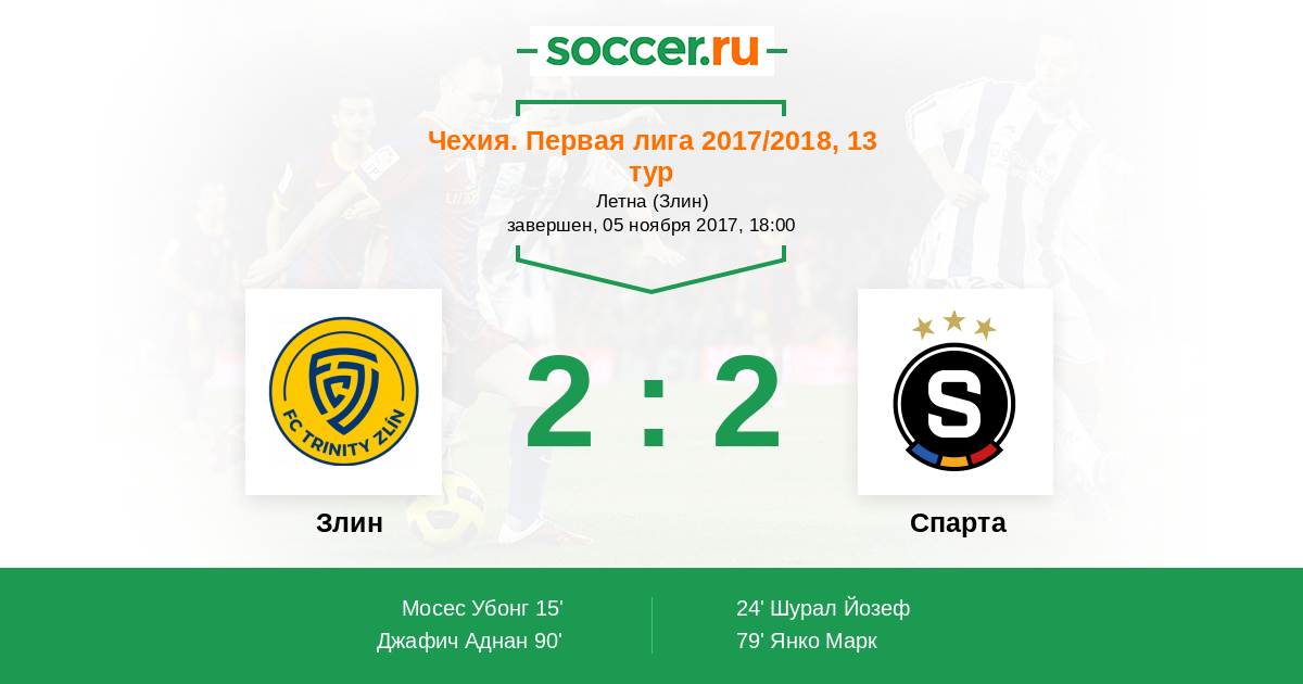 Злин - Спарта: обзор матча 5 ноября 2017