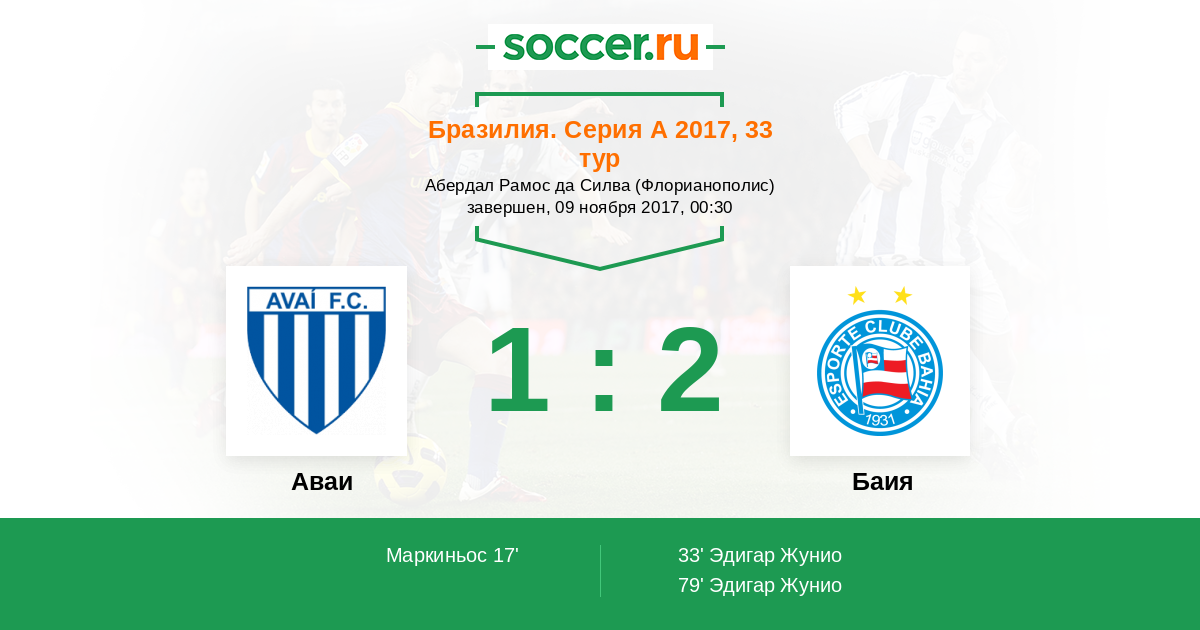 Аваи - Баия: обзор матча 9 ноября 2017