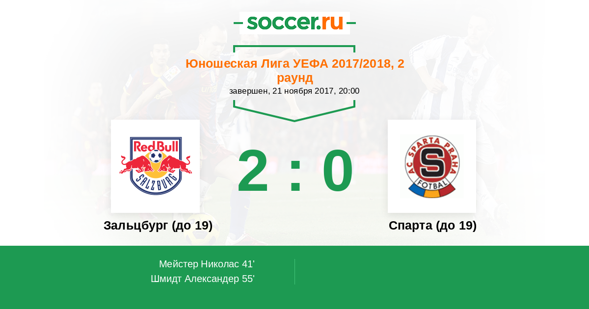 Зальцбург (до 19) - Спарта (до 19): обзор матча 21 ноября 2017