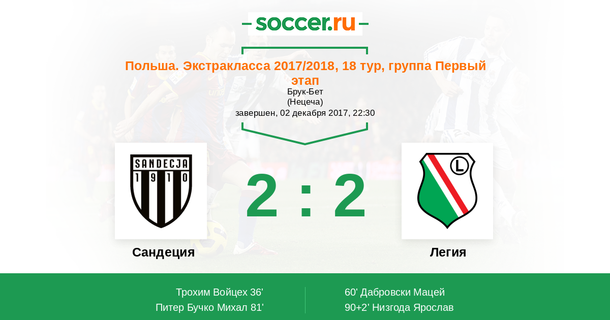 Сандеция - Легия: обзор матча 2 декабря 2017
