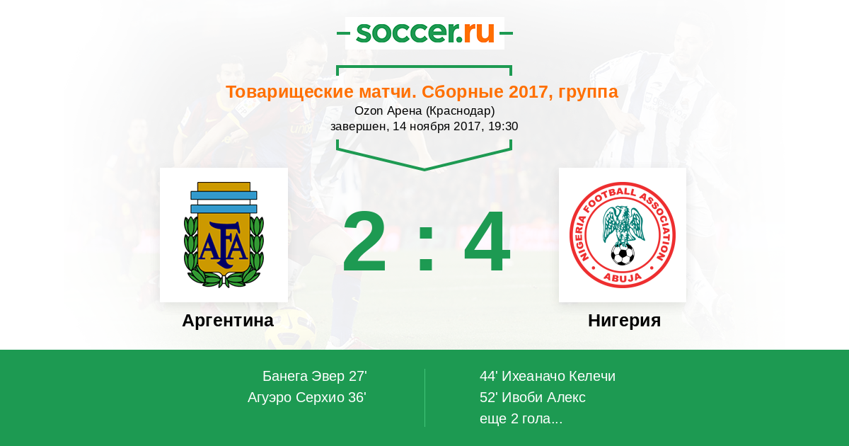 Аргентина - Нигерия: обзор матча 14 ноября 2017