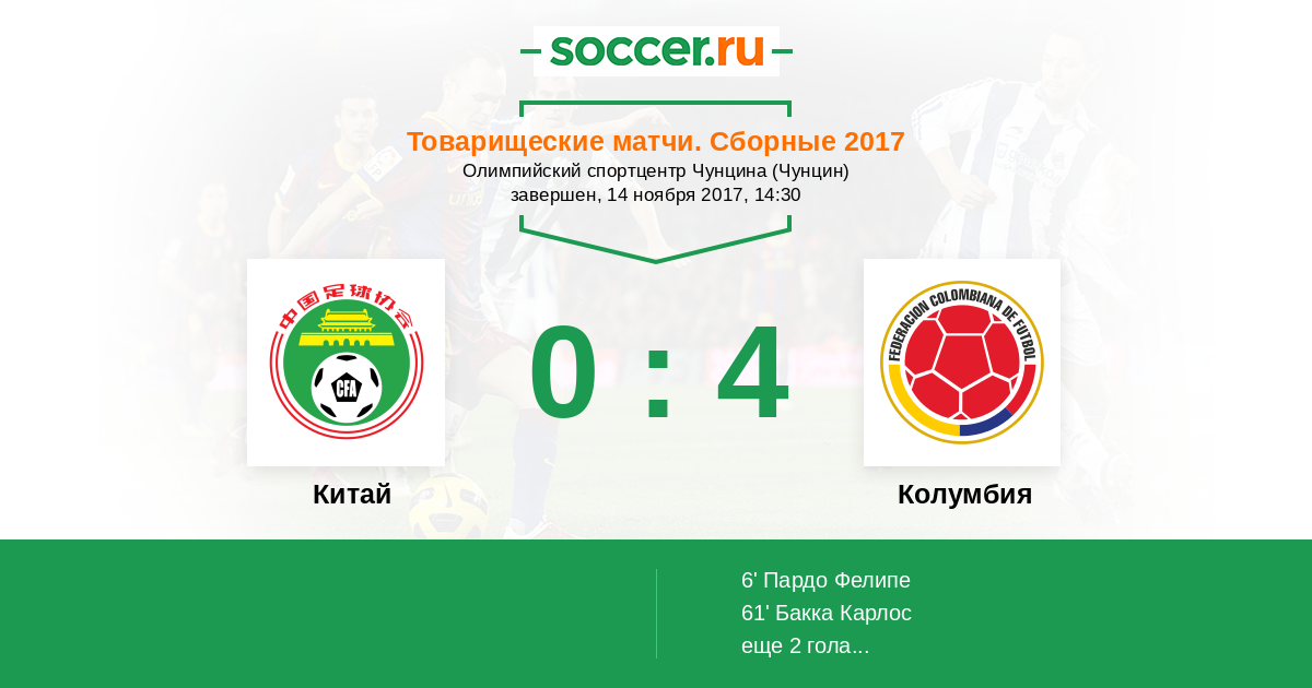 Китай - Колумбия: обзор матча 14 ноября 2017