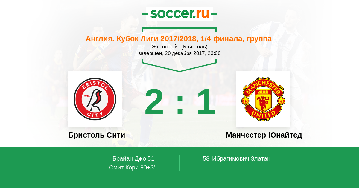 Бристоль Сити - Манчестер Юнайтед: обзор матча 20 декабря 2017