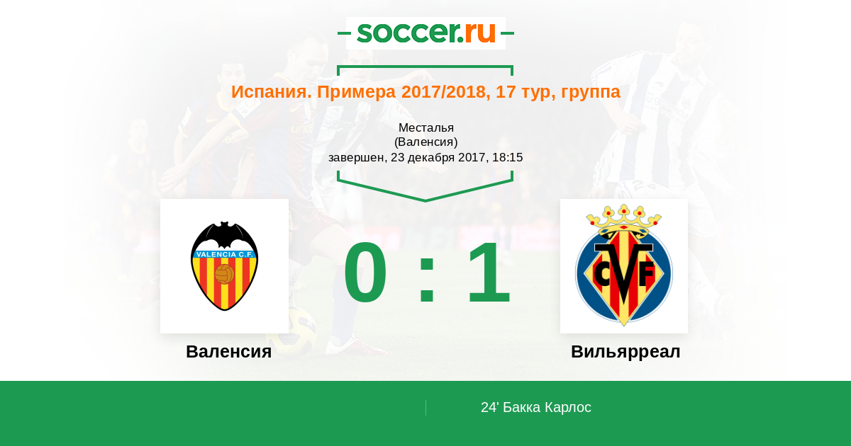 Валенсия - Вильярреал: обзор матча 23 декабря 2017