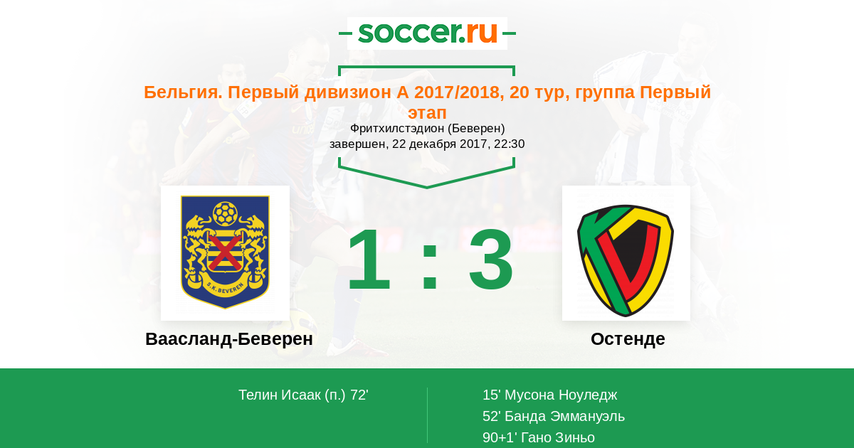 Ваасланд-Беверен - Остенде: обзор матча 22 декабря 2017