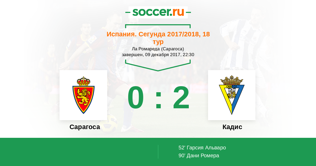 Сарагоса - Кадис: обзор матча 9 декабря 2017