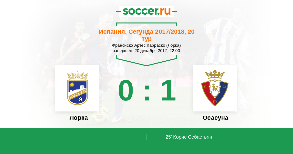 Лорка - Осасуна: обзор матча 20 декабря 2017