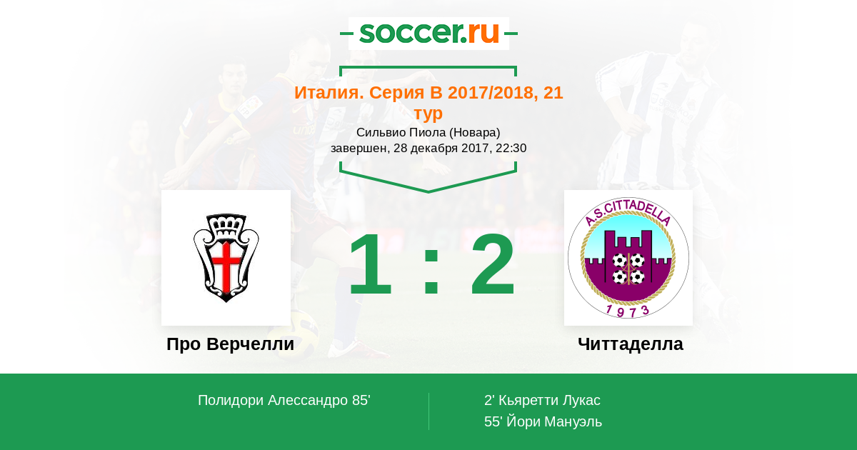 Про Верчелли - Читтаделла: обзор матча 28 декабря 2017