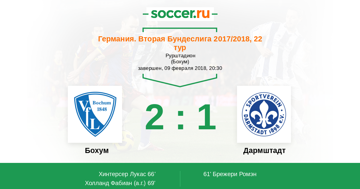 Бохум - Дармштадт: обзор матча 9 февраля 2018