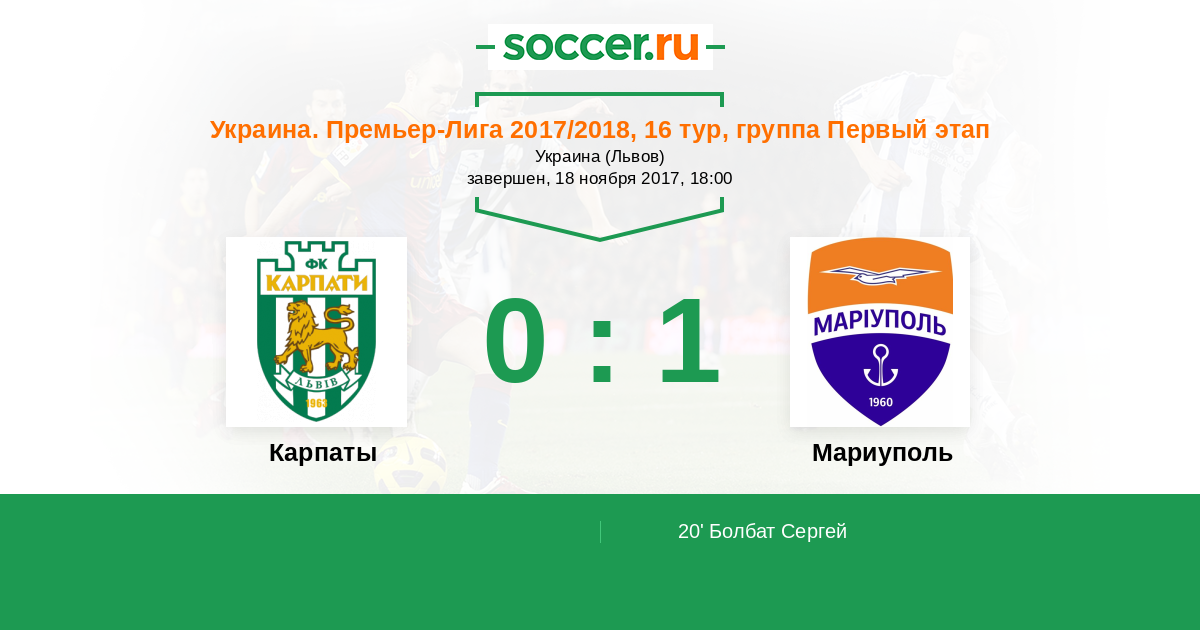Карпаты - Мариуполь: обзор матча 18 ноября 2017