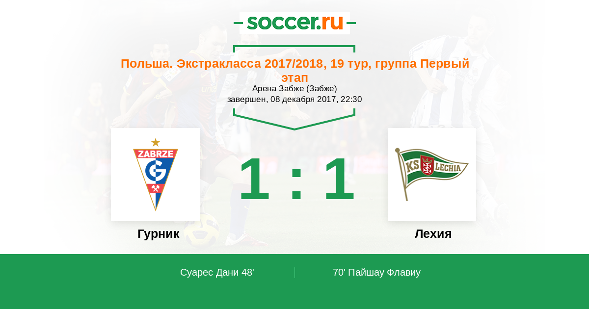 Гурник - Лехия: обзор матча 8 декабря 2017