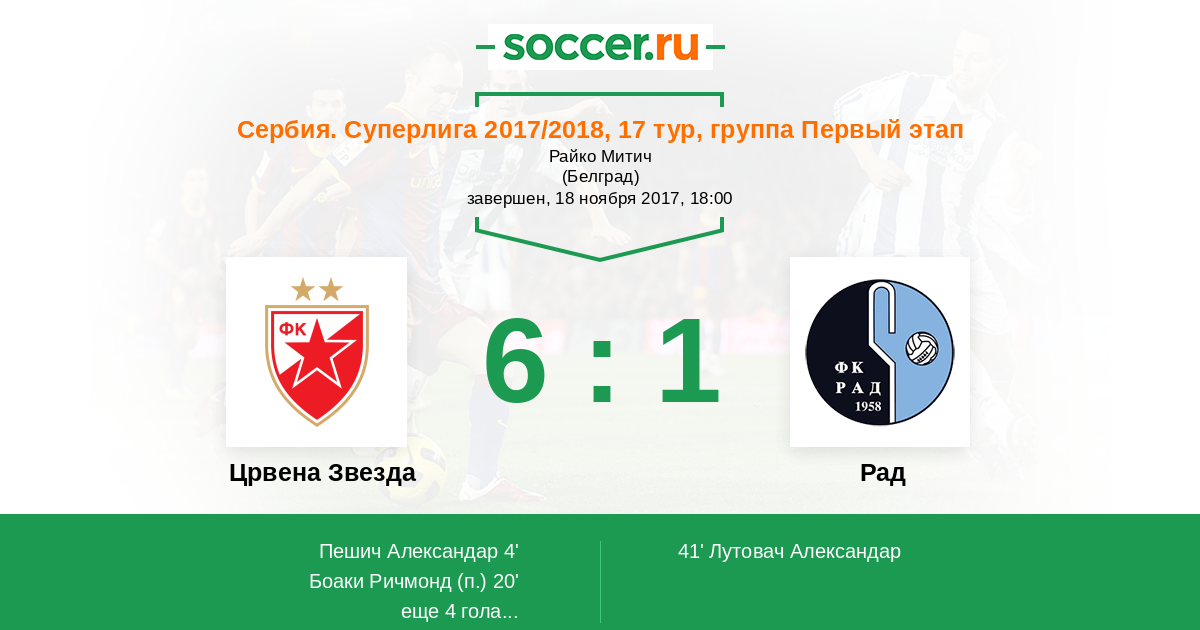 Црвена Звезда - Рад: обзор матча 18 ноября 2017
