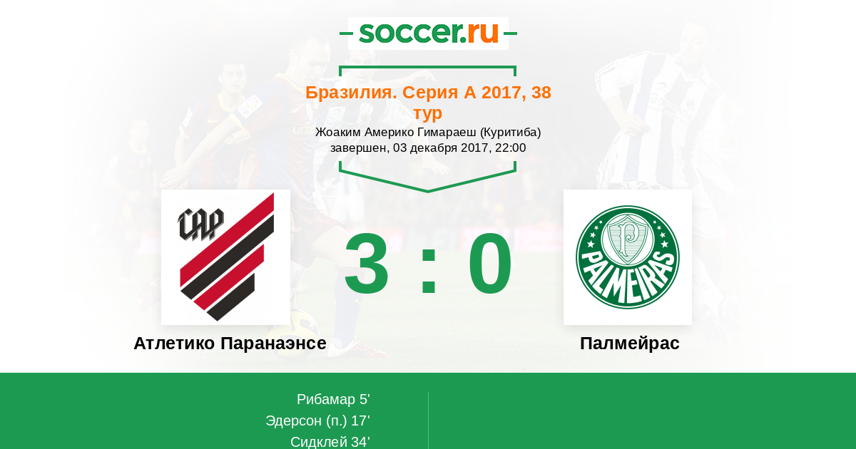 Атлетико Паранаэнсе - Палмейрас: обзор матча 3 декабря 2017