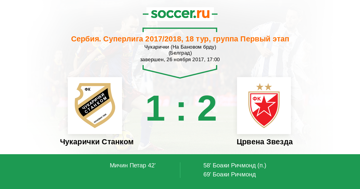 Чукарички Станком - Црвена Звезда: обзор матча 26 ноября 2017