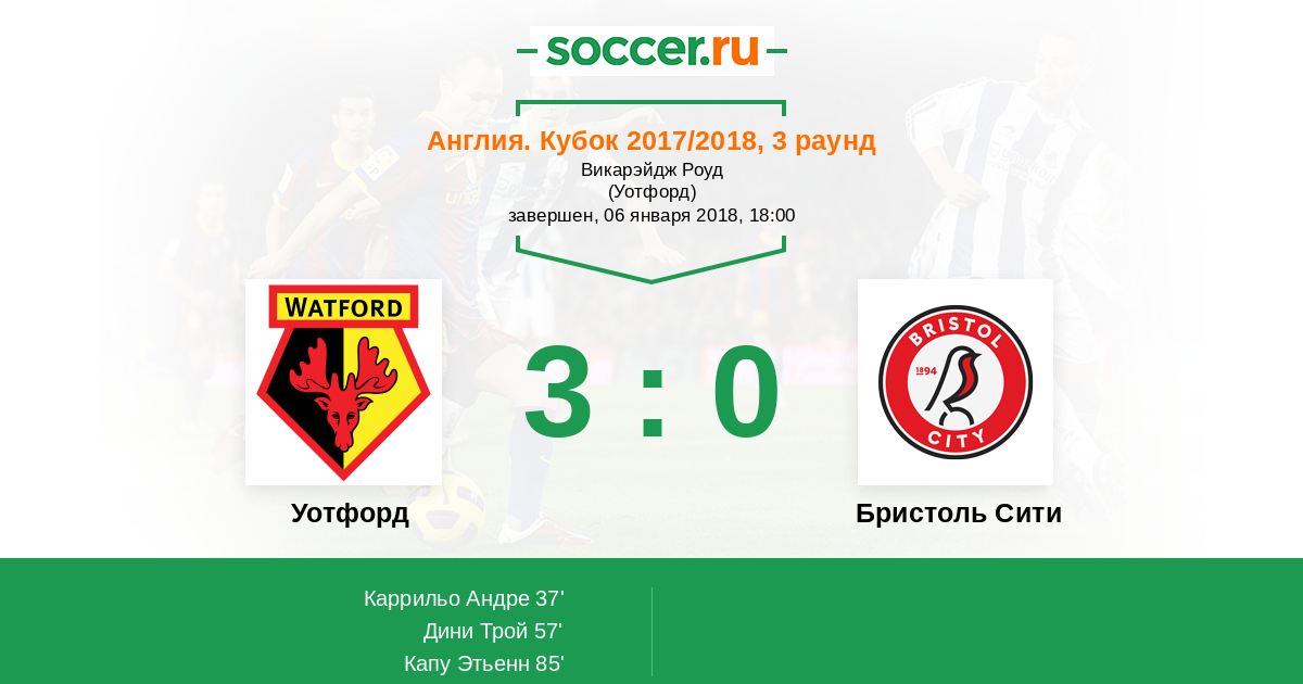 Уотфорд - Бристоль Сити: обзор матча 6 января 2018