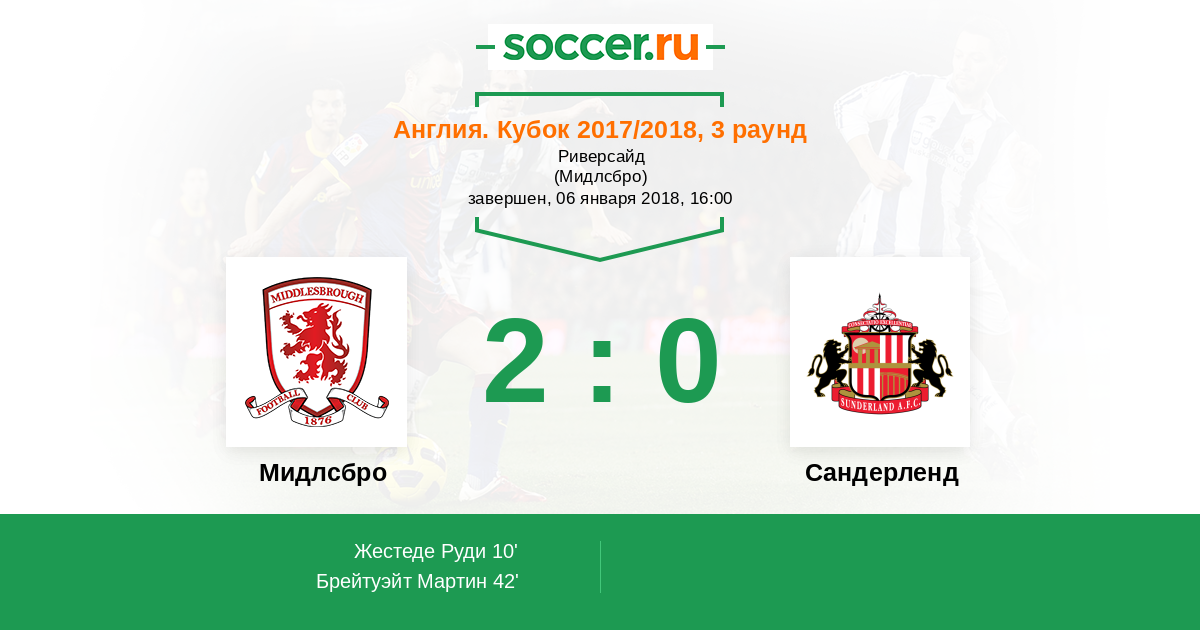 Мидлсбро - Сандерленд: обзор матча 6 января 2018