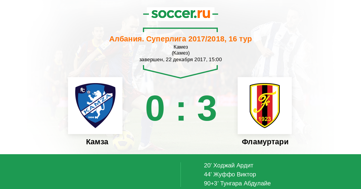 Камза - Фламуртари: обзор матча 22 декабря 2017