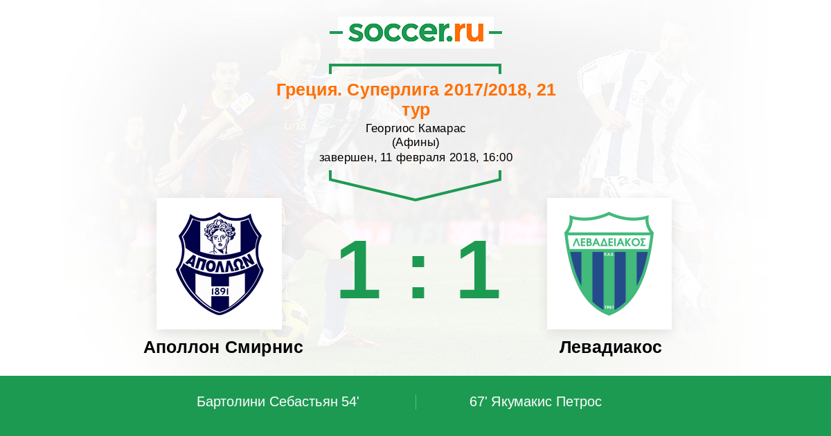 Аполлон Смирнис - Левадиакос: обзор матча 11 февраля 2018