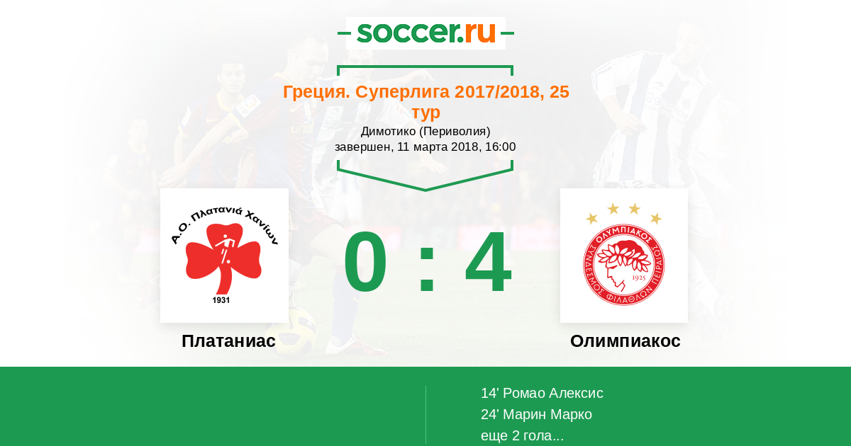 Платаниас - Олимпиакос: обзор матча 11 марта 2018