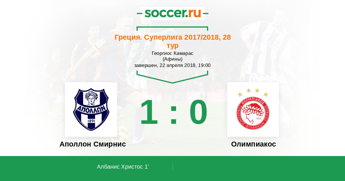 Аполлон Смирнис - Олимпиакос: обзор матча 22 апреля 2018