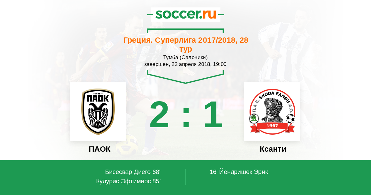 ПАОК - Ксанти: обзор матча 22 апреля 2018