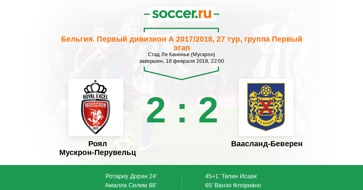 Роял Мускрон-Перувельц - Ваасланд-Беверен: обзор матча 18 февраля 2018