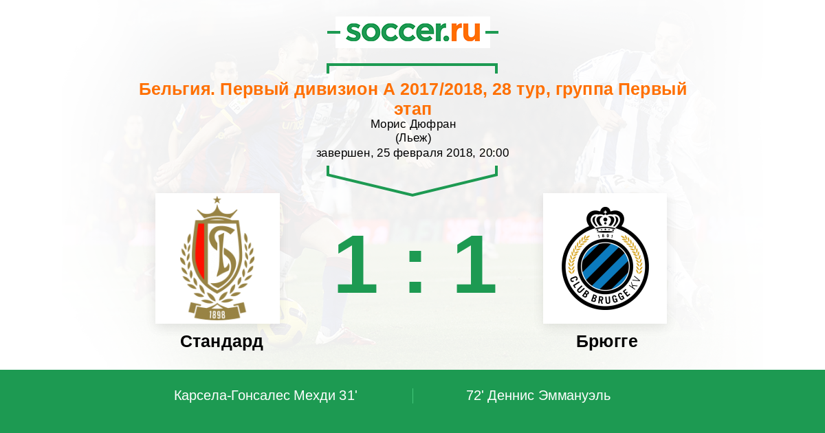 Стандард - Брюгге: обзор матча 25 февраля 2018