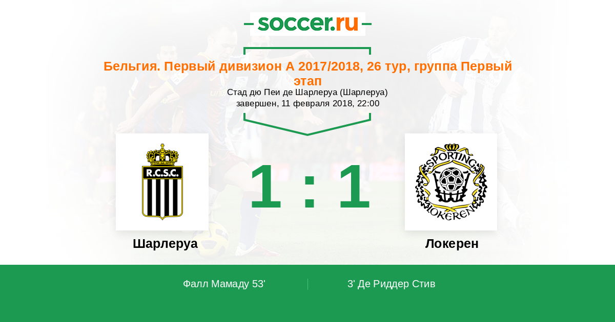 Шарлеруа - Локерен: обзор матча 11 февраля 2018