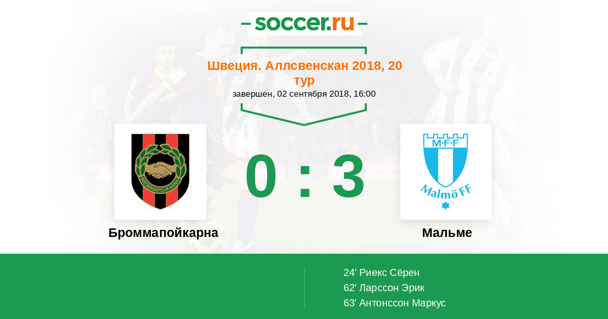 Броммапойкарна - Мальме: обзор матча 2 сентября 2018