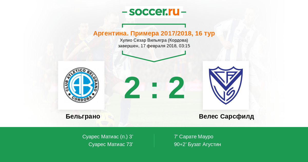 Бельграно - Велес Сарсфилд: обзор матча 17 февраля 2018