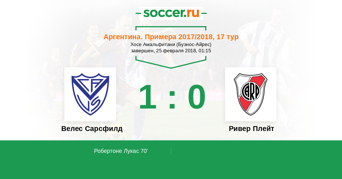 Велес Сарсфилд - Ривер Плейт: обзор матча 25 февраля 2018