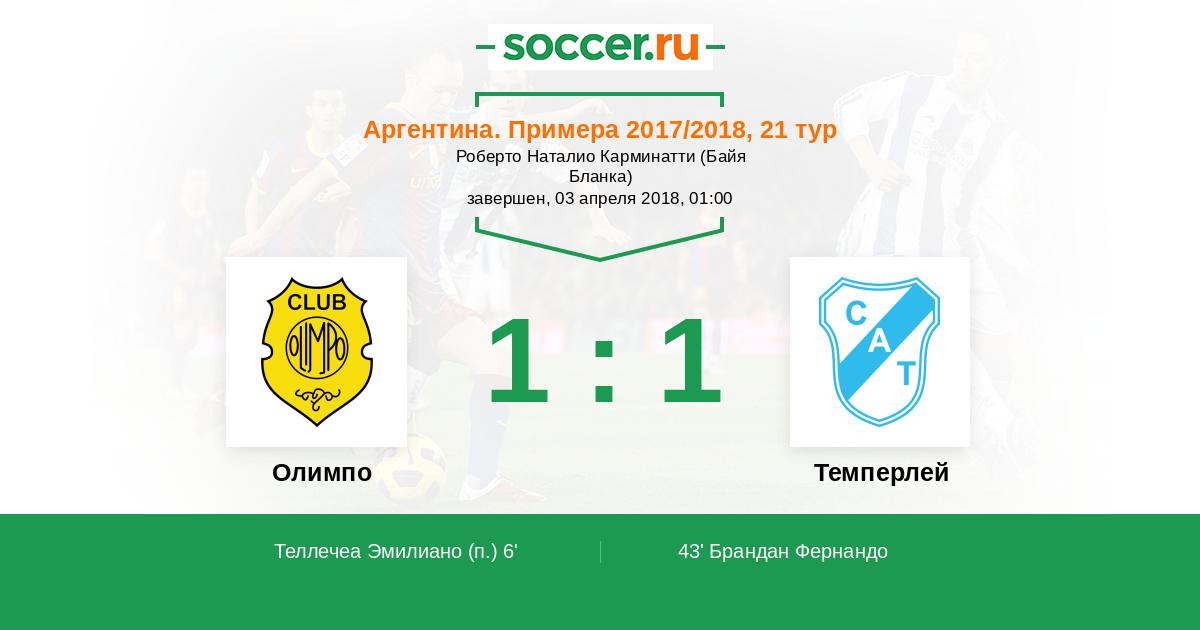 Олимпо - Темперлей: обзор матча 3 апреля 2018