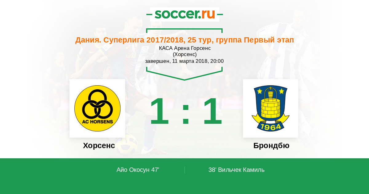 Хорсенс - Брондбю: обзор матча 11 марта 2018