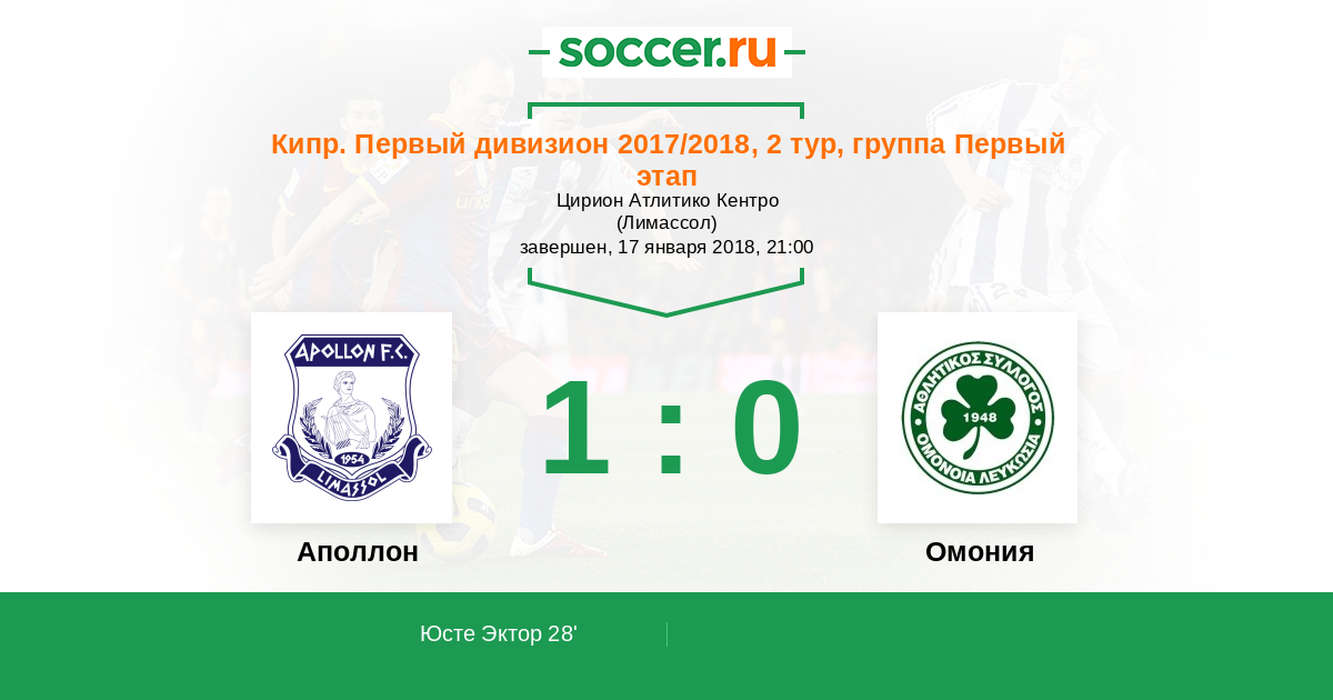 Аполлон - Омония: обзор матча 17 января 2018