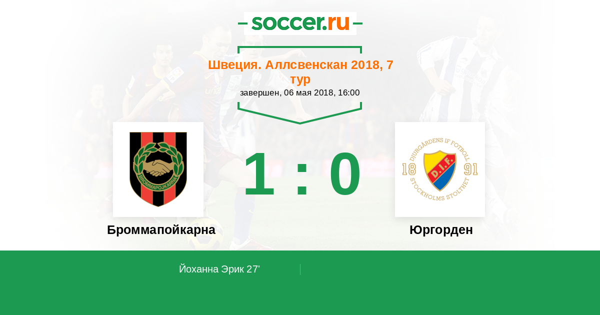 Броммапойкарна - Юргорден: обзор матча 6 мая 2018